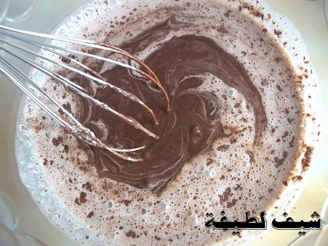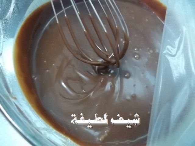 نقلب بإستخدم شريط الخفق لحد ما الشوكلاتة تذوب أسيبكم مع الخطوات بتاعة المرحلة دي